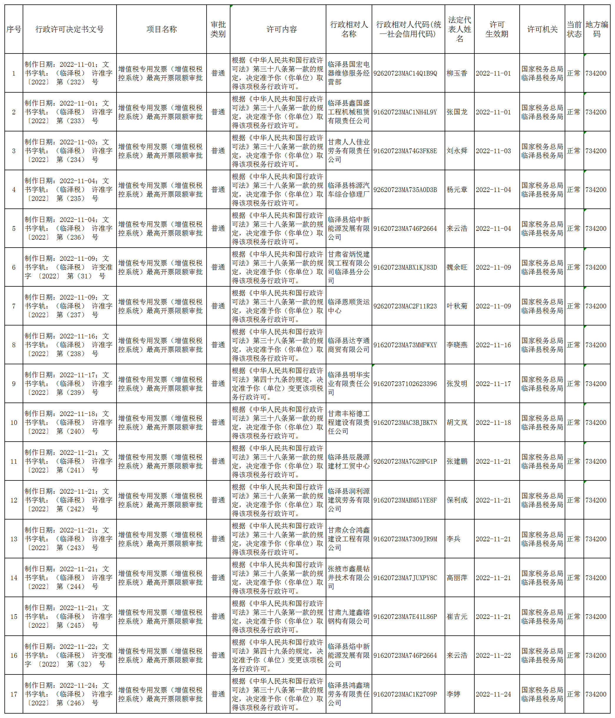 国家税务总局bt365验证不通过_365bet官网下载_365bet体坛即时比分税务局准予行政许可的结果(2022.11.01-2022.11.30)
