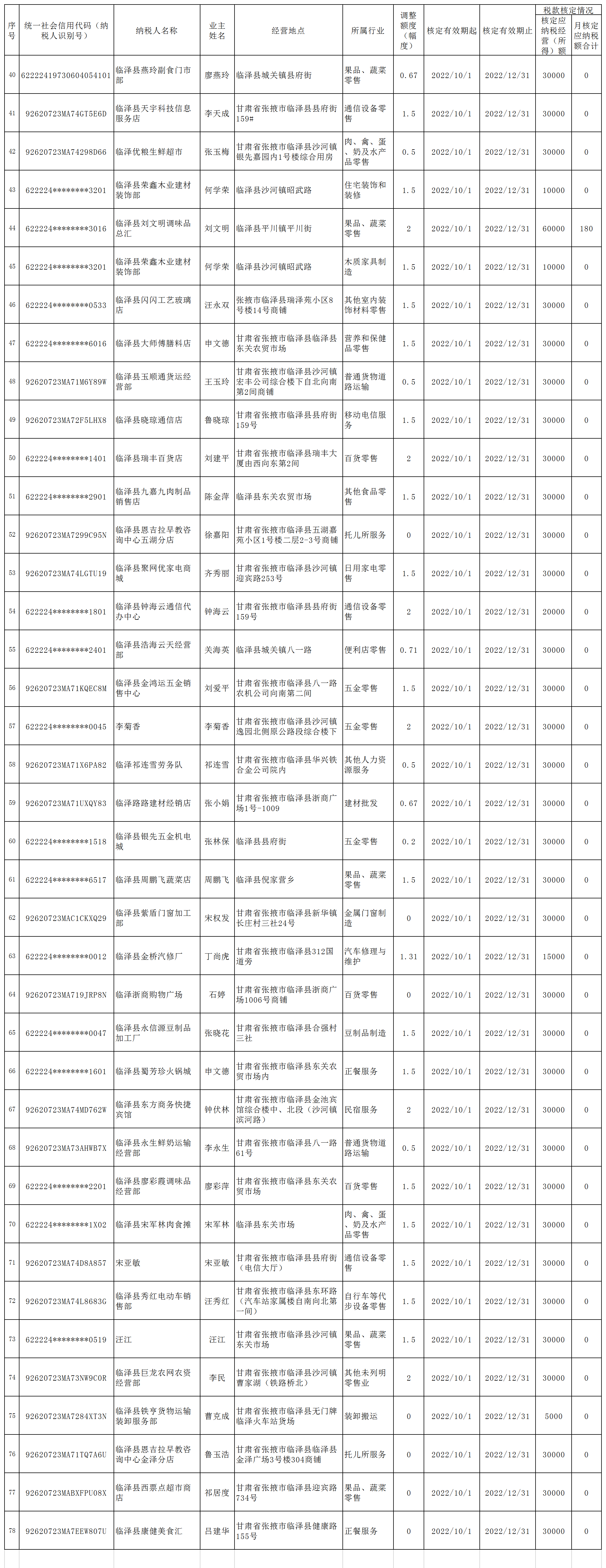 国家税务总局bt365验证不通过_365bet官网下载_365bet体坛即时比分税务局定期定额核定公示(2022年11月1日-11月30日)(二)